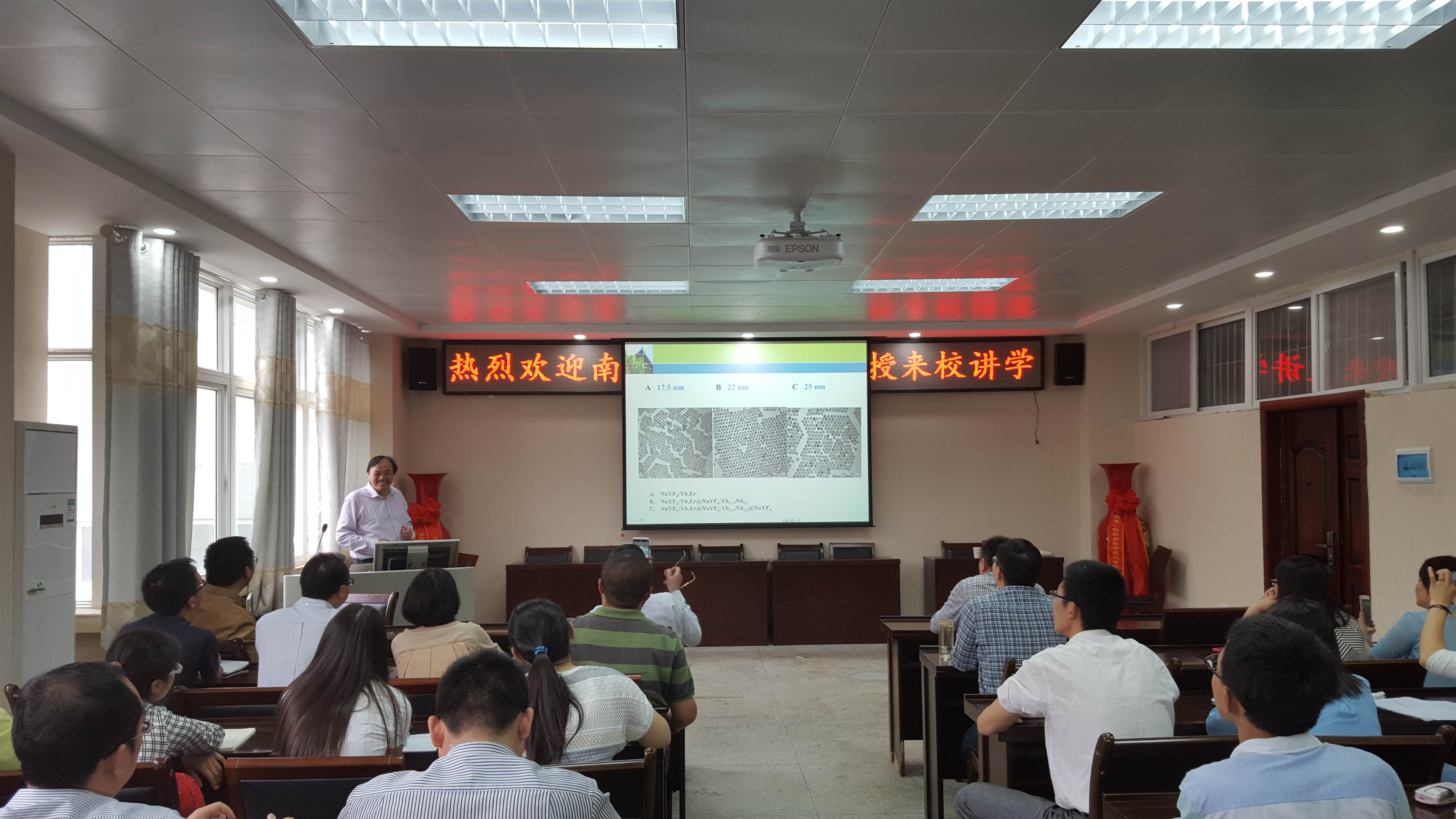 5月5日上午,应我校邀请,南京大学朱俊杰教授在化学楼学术报告厅作了题为“基于纳米材料的细胞电化学传感与药物输运的研究”的学术报告。副校长刘彦明教授出席并主持了报告会,今年会官网副院长井强山教授、今年会官网全体青年教师和研究生参加了报告会。