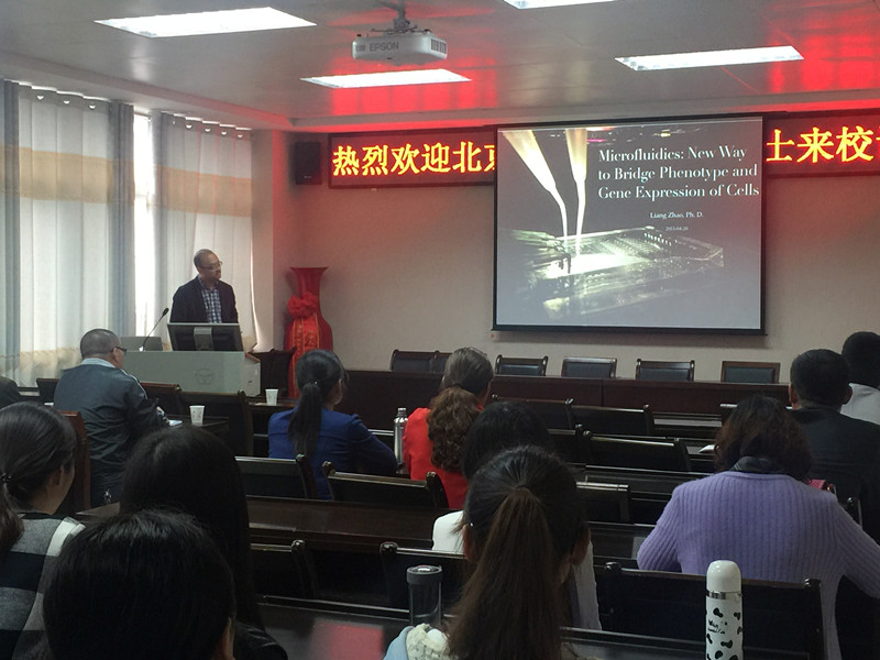 赵亮博士从微流控芯片在细胞生物学分析方面的独特优势讲起,结合多年研究工作积累,深入浅出的介绍了自己的最新研究成果。主要包括通过巧妙构思设计细胞共培养芯片平台及其在细胞浸润方面的应用;基于3D打印技术的“乐高”细胞检测平技术平台及细胞共培养应用研究;基于微流控芯片单细胞全转录测序技术。在互动环节,赵亮博士详细的回答了师生提出的相关问题,并与师生进行了讨论交流。