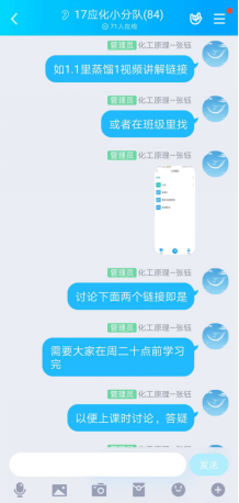 张钰老师是17级应化班的化工原理专业课老师。自从接到“停课不停学”的要求,她就忙碌了起来。为保障线上教学顺利进行,她积极参加学校组织的网上教学技能培训,熟练掌握学习通线上教学技能。为保证学生在家正常学习,她进入了17级应化班班群,与同学们深入交流讨论,了解他们的学习困难和意愿,制定了切实可行的线上教学计划表。思路一点点理清,问题一个个解决——没有教材,就上传电子课本;如果网络卡顿,就提前录制速课或者采用直播回看;为了督促落实,上课时间段里和学生同步观看课程,进行研讨,对反馈的疑问及时采用直播的形式进行解答;课后布置作业和考试题目,加强学生对知识的复习巩固。她还是一位两岁孩子的妈妈,白天带孩子,每天夜里趁孩子睡招,加班到深夜,力保备课充分,课件精益求精,打造出高质量的“线上课程”,让每一名学生都像在学校教室的课堂上一样,真正的做到停课不停学。