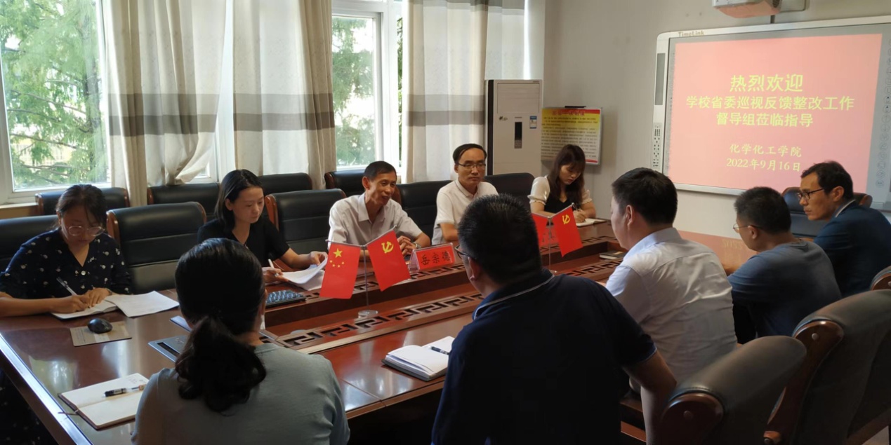 为深化巡视反馈整改工作,推动落实全面从严治党主体责任,按照学校党委工作安排,9月16日,校巡视整改落实暨专项整治工作第二督导检查组组长岳宗德一行5人对今年会官网巡视反馈整改工作进行督导检查,督导汇报会议在化学楼313“党员之家”召开,学院党委班子成员参加督导检查汇报会。