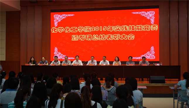志存高远,放飞梦想;脚踏实地,彰显魅力。为提高同学们的学习劲头,鼓舞他们的考研斗志,6月2日晚,今年会官网2015年实践技能竞赛暨毕业生考研总结表彰大会在逸夫楼报告厅隆重举行。副校长刘彦明,党委宣传部部长丁少锋,团委书记王建旭,教务处副处长祁传达,学生处副处长赵晨,化院党总支书记周涛,院长杨性坤,副院长归风铁、骆定法莅临大会现场,各年级辅导员携考取研究生的毕业生,2012级全体学生,2013级和2014级学生代表共同参加了本次大会,大会由化院党总支副书记宋力主持。