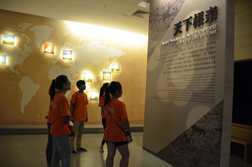 信阳博物馆坐落在羊山新区,气势恢宏、古朴庄严。馆内基本陈列共分为“远古家园”、“淮上诸侯”、“天下根亲”、“茶韵天香”等六个板块,多维展示了信阳山清水秀的地理面貌和豫风楚韵的文化特质,彰显了厚重信阳的历史气象。志愿者们在讲解员的引导下依次参观各个展厅,在“天下根亲”展厅中,志愿者们兴致勃勃地找起了自己的姓氏,他们惊奇地发现百家大姓中有73个起始于淮河之岸。而在“茶韵天香”展厅,通过参观复原的清末“车云茶社”和“红茶馆”,志愿者体验了采茶、制茶和品茶的全过程,折服于信阳深厚的茶文化。