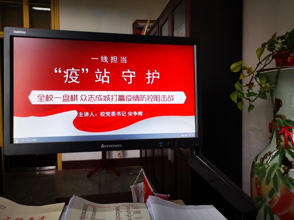 宋争辉书记以《“一线担当‘疫’线守护,全校一盘棋众志成城打赢疫情防控阻击战”》为题,从“疫情防控进入‘胶着对垒’关键时期的全方位研判”“全力以赴构建师生正常学习生活工作环境”“战胜疫情是大课堂,是人生成长的教科书”三方面开讲。宋书记着重介绍了学校党委严格落实党中央和习近平总书记的指示精神,按照省委和省政府的决策部署,落实疫情防控工作取得的成效、开学前后“停课不停教,停课不停学”工作的准备情况。希望全体师生务必要做到“三个清醒”、确保“九个到位”、实现三个“能够”。强调全校要一盘棋,众志成城打赢疫情防控阻击战,指出战役经历终将成为广大师生人生路上的宝贵财富和坚实的阶梯,希望广大师生不惧风雨,不畏险阻,只争朝夕,不负韶华。强调全体师生党员要充分发挥先锋模范作用,党支部切实发挥基层党组织战斗堡垒作用,让党旗高高飘扬在疫情防控斗争第一线。