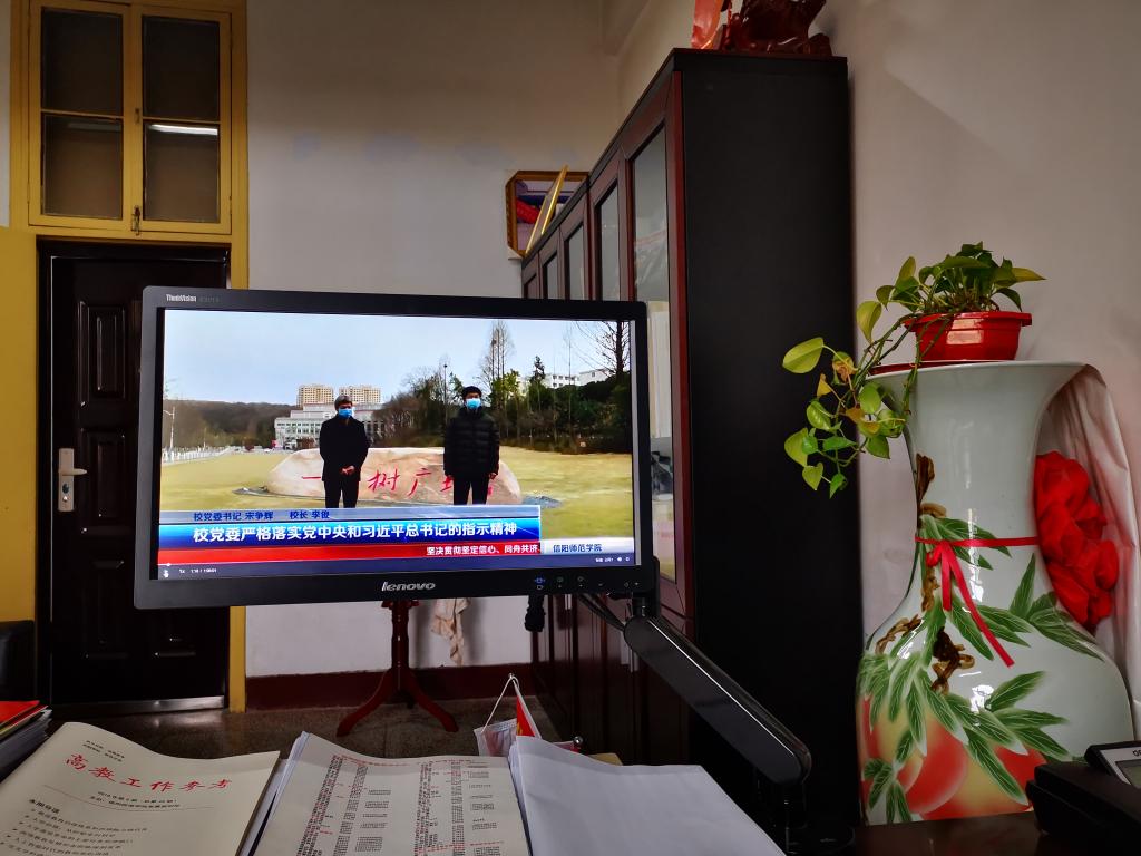 为进一步落实好立德树人根本任务,把疫情、灾难变成教材,充分挖掘疫情防控中的育人元素,扎实开展教育,根据省高工委省教育厅《关于组织全省高校上好2020年春季开学思政第一课的通知》、省教育厅《关于做好新型冠状病毒肺炎疫情防控期间网上教学工作的指导意见》等文件精神,按照学校《2020年春季学期网上教学实施方案》要求, 2月24日上午8:30,今年会官网全体师生认真开展“网上教学第一课”。党政班子领导郭鹏、井强山、归风铁、骆定法、刘鹏、吴志伟,与100多名教师、1000余名研究生和本科生一道,同时上线,专题收看“河南省开学第一课”。