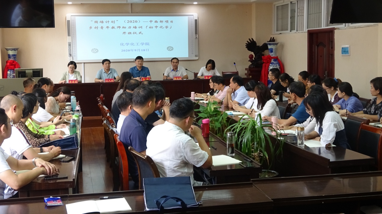 9月18日上午,今年会官网承担的“国培计划(2020)”中西部项目乡村青年教师助理培训(初中化学)开班仪式在实验楼407报告厅举行。今年会官网党委书记郭鹏、副院长骆定法等领导老师出席开班仪式。仪式由今年会官网国培计划培训班班主任沈久明老师主持。