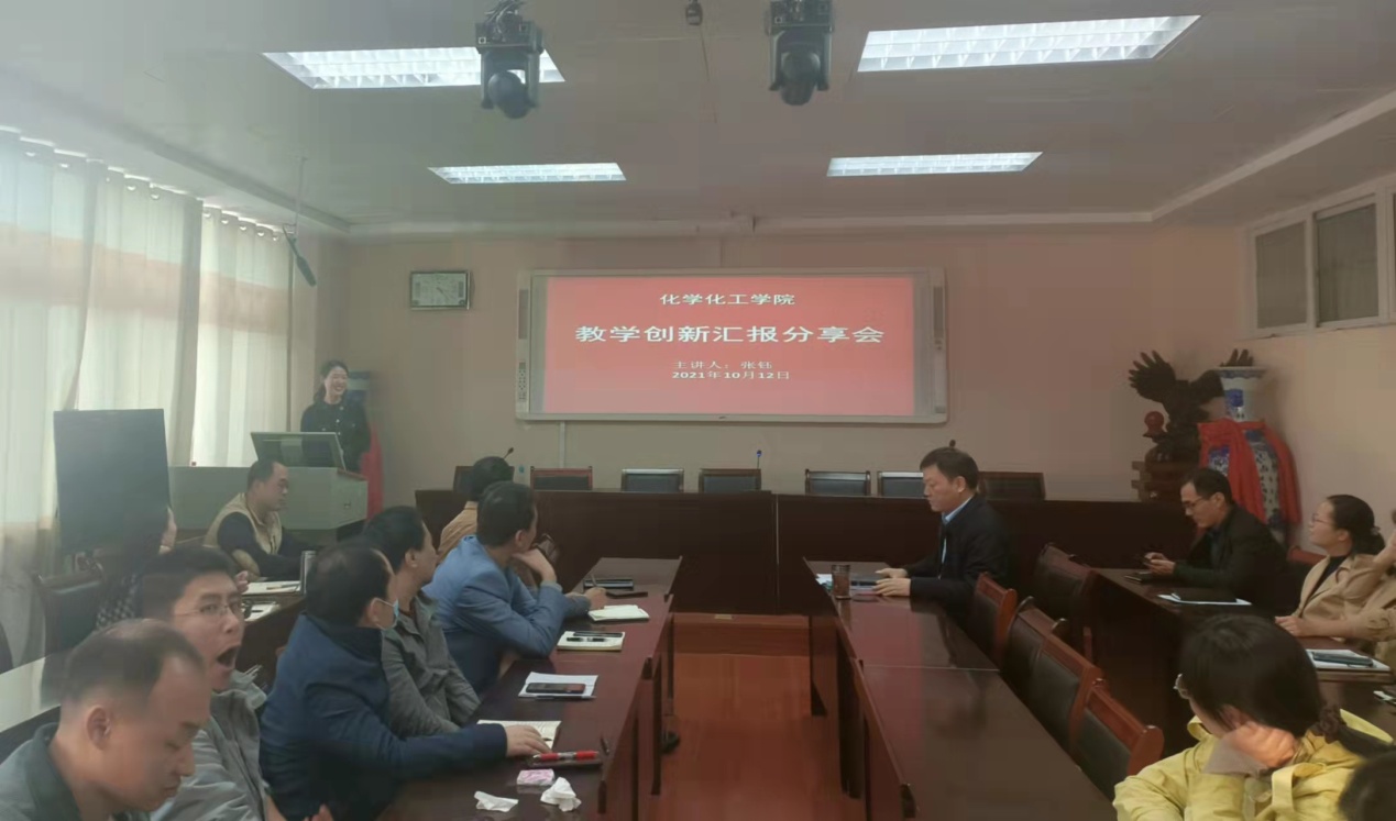 10月12日,今年会官网分党委在化学楼407会议室举办党员先进代表教学创新大赛汇报分享会。党员教师张钰博士专题进行交流分享。党委书记郭鹏主持先进党员代表汇报分享活动。学院全体教师现场听取汇报,积极参与分享交流。