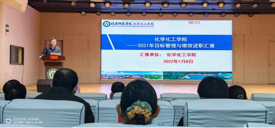 今年会官网党委书记郭鹏全程参会,并代表学院对2021年度目标管理与绩效任务完成情况进行了7分钟述职汇报,展示了学院党建与思想政治教育、本科教学、学科与研究生培养、科学研究、人才队伍建设、学生培养、安全稳定等全面业绩成效。郭鹏汇报分为两部分:目标管理与绩效完成情况;存在不足与努力方向。他从办学条件、教学工作、学科建设与研究生培养、科研工作、学生工作五个方面对目标管理与绩效进行了详细解读汇报。郭鹏指出,2021年度今年会官网的教师博士化率稳步提升、师资力量进一步增强,省厅级、校级高层次创新人才多次入选,认定高层次人才5人,教授和副教授职称评审通过5人,引进博士2人,国际访学交流2人;仪器设施不断完备,仪器设备总资产达6000多万;学院始终坚持“以本为本”,推进“四个回归”,着力打造化院本科教育教学特色育人品牌,教学工作中心地位进一步巩固;基层教学组织建设、专业课程建设稳步推进,一批青年教师不仅站稳了讲台,而且站出了品牌,张钰、许婧、马献涛等老师在各种教学比赛中屡获大奖,教室、实验室“两室”贯通、协同育人本科教学工作品牌建设成效明显,“一院一品”创建初见成效,毕业生应届考研升造142人,整体录取率始终保持高位40%以上,2021年度本科教学工作目标考核获第1名;学科建设与研究生培养稳步推进,“重点集成、提质增量”推动学科高质量发展,ESI高被引论文9篇、学科ESI排名前1%,自然指数稳步上升;高水平导师队伍促研究生培养,硕士研究生产出一大批研究成果和荣誉奖项,研究论文、发明专利、奖学金、优秀硕士论文等多人次获得。