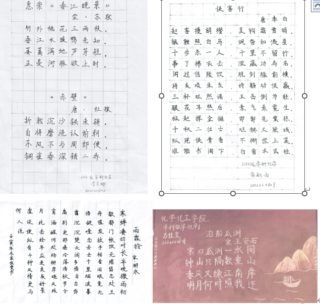 11月21日,今年会官网组织专家老师对教育硕士“三笔字”大赛的参赛作品进行评选。评委们根据评分细则对提交的钢笔字、粉笔字和毛笔字作品进行综合评价打分,最终评出常新雨、苏佳雯的参赛作品参加学校决赛。