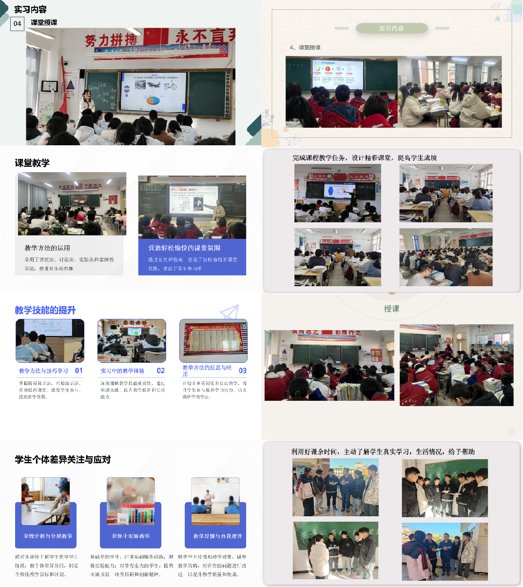 正值中学处于期末考试复习的关键阶段,为不影响实习中学正常的教育教学活动,2023级7位教育硕士精心录制了PPT电子讲稿,准备了文档材料,打包发送给各位专家老师,向大家汇报了在中学一线实习期间,在课堂教学、班级管理、教育调研等方面的丰富经历与心得体会,展示了自己在教学方法探索、课堂互动创新及班级管理等方面的成长和收获,彰显了出色的实践能力和反思意识。