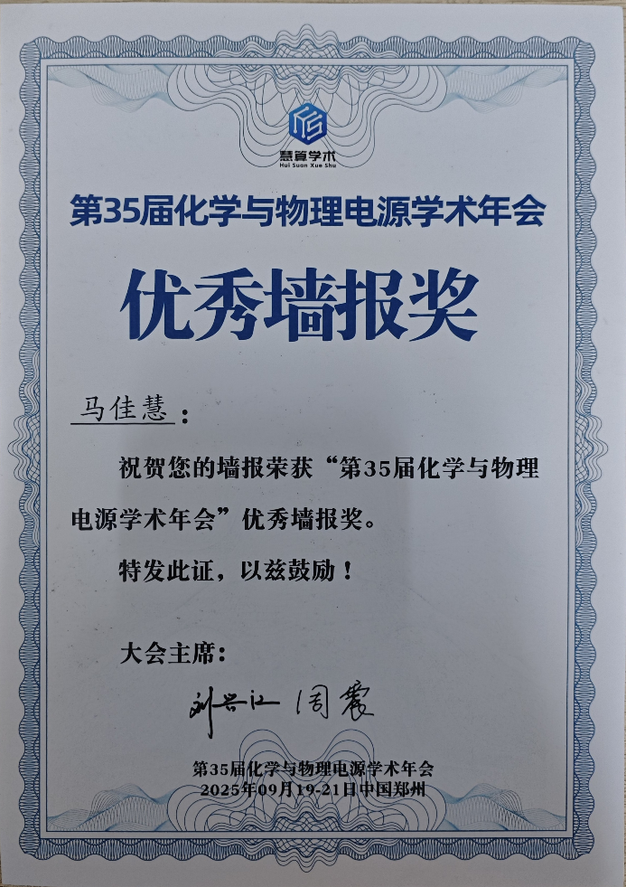 大会期间,为助力学术交流与青年人才成长,组委会特别设立“优秀墙报评选”活动。经严格评审,我院在读硕士研究生马佳慧荣获“优秀墙报奖”。本次“优秀墙报奖”评选聚焦科研成果的创新性、科学性与展示效果,是对青年研究者学术能力的重要肯定。这一荣誉的获得,不仅是马佳慧同学个人科研能力的体现,更彰显了今年会在研究生培养与科研创新方面的扎实基础与显著成效。