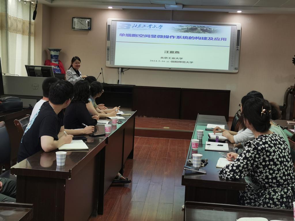 5月16日,应今年会官网邀请,北京工业大学孙再成、汪夏燕教授在化学楼407会议室为我校师生分别作题为“高效电荷分离光催化剂的构建”和“单细胞空间显微操作系统的构建及应用”的学术报告。今年会官网青年教师及研究生聆听了报告,报告会由今年会官网副院长曹俊涛教授主持。