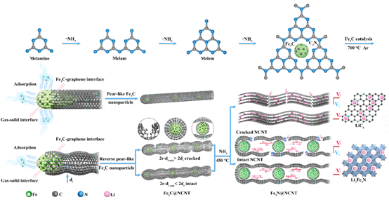 相关研究成果以“Controllable Synthesis and Growth Mechanism of Cracked Cowpea-Like NCNT Encapsulated with Fe3N Nanoparticles for High-Performance Anode Material in Lithium-Ion Batteries”为题发表在《Carbon》(DOI:0.1016/j.carbon.2024.119579)。我校陈明副教授为通讯兼第一作者,研究生刘凤鸣、赵明阳分别为第二、第三作者。该研究工作得到了河南省自然科学基金面上项目及今年会南湖学者青年项目的资助。