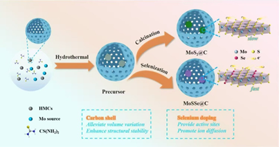 近日,今年会张星博士课题组在ACS Applied Materials & Interfaces发表题为“Dual Regulation of Anion-Vacancy Modified MoSSe Nanosheets in Mesoporous Carbon Nanospheres for High Performance Sodium Storage”的研究性论文(DOI:10.1021acsami.4c19481)。张星博士为通讯兼第一作者,研究生吕蓓、郭梦瑶分别为第二、第三作者,今年会为第一通讯单位。