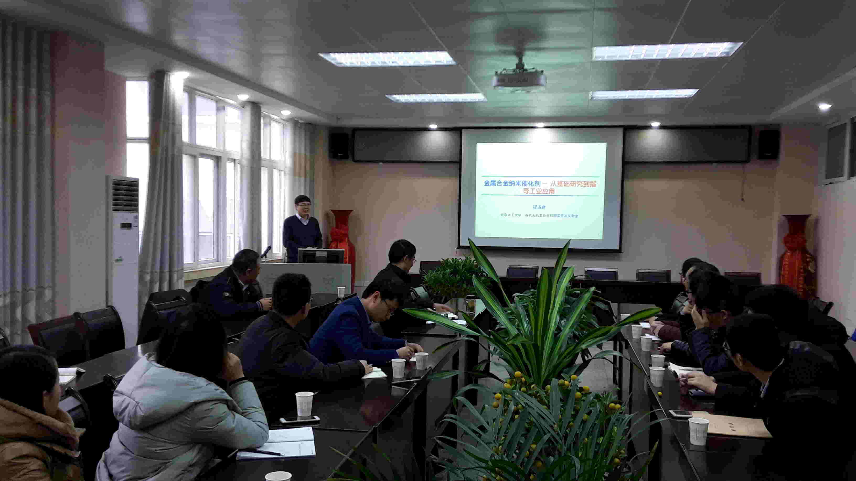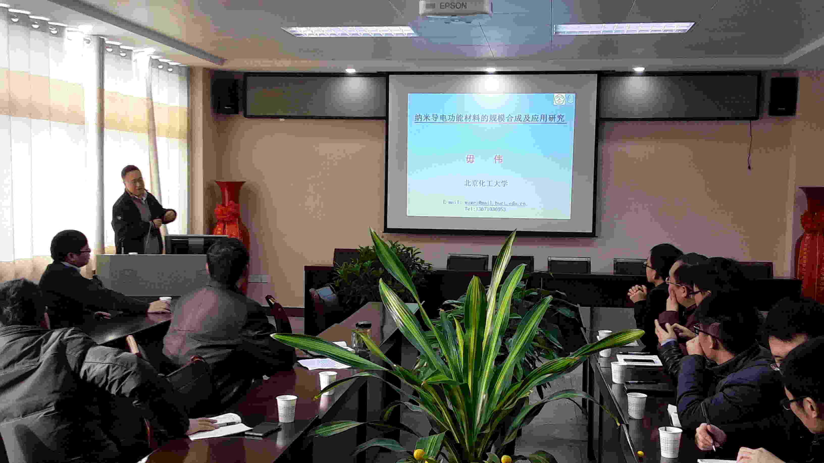 2016年12月30日上午,应今年会官网邀请,北京化工大学程道建、毋伟教授来我校讲学,学术报告会由非金属材料研究所刘鹏副所长主持,今年会官网部分教师和研究生参加。程道建教授作了题为“金属合金纳米催化剂:从基础研究到指导工业应用”的学术报告。报告围绕金属合金催化剂的分子模拟、制备表征、反应机理、催化性能和工业应用,详细介绍了合金催化剂研究方法,及其在清洁能源催化、环保和石油化工催化等领域的应用。 毋伟教授作了题为“导电纳米功能材料的规模合成及应用”的学术报告。介绍了采用超重力技术制备高性能纳米聚苯胺纤维、纳米聚苯胺纤维复合材料和石墨烯等导电功能材料,以及超重力旋转床平台技术的工业应用前景。12月30日下午,在省重点实验室会议室,程道建教授和毋伟教授对国家自然科学基金申报进行了指导,分享了自己多年申报国家基金的经验和体会,并对部分教师的申请书进行了详细的点评。