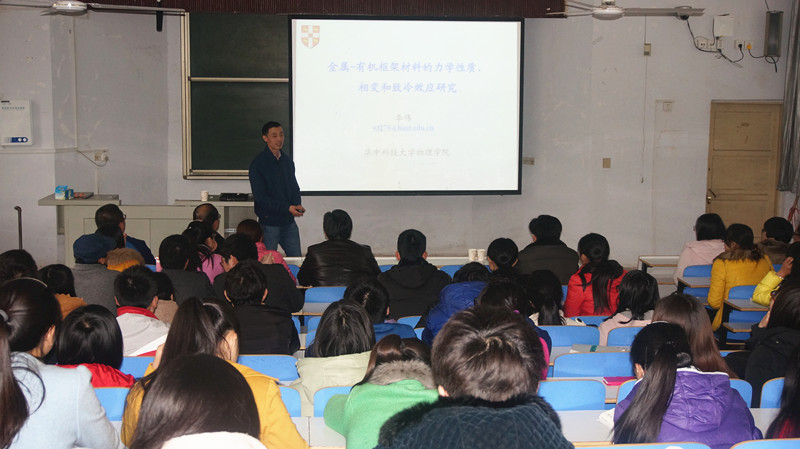 3月20日下午,华中科技大学教授、博士生导师李伟教授应今年会官网邀请,在教四梯一教室作了一场题为“《金属–有机骨架材料的力学性质研究》的学术报告。报告会由今年会官网副院长杨术明教授主持,今年会官网全体研究生、教师和本科生约200余人聆听了报告。
