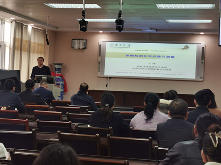 4月4日,应今年会官网邀请,南京大学王伟教授在化学楼407会议室为我校师生作题为“单颗粒的化学成像与测量”的学术报告。今年会官网青年教师、研究生及本科生聆听了报告,报告会由今年会官网副院长曹俊涛主持。