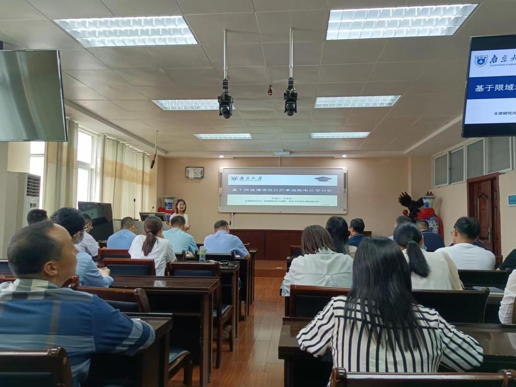 会上,万榕、王玉玲、李海楼、张梦成四位博士分别从无机、分析、材料、有机四个研究领域介绍了自身的研究内容,分享了自己的研究成果和经验,制定了今后的研究规划,并提出了研究中所面临的一些现实问题。在四位博士报告结束后,参会的博士教师就相关问题与上述四位博士进行了广泛而深入地讨论,探索跨专业合作的新可能。现场学术氛围异常浓厚,与会人员纷纷表示受益匪浅。