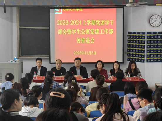 为进一步加强学生公寓党建工作,今年会官网于11月3日在教四101召开2023-2024上学期学生公寓党建工作落实部署推进会。今年会官网党委书记郭鹏、副书记曲剧,专职组织员冷向宇,辅导员赵方方、严赫、翟成辉出席会议,全体学生党员、学生干部共同参加。