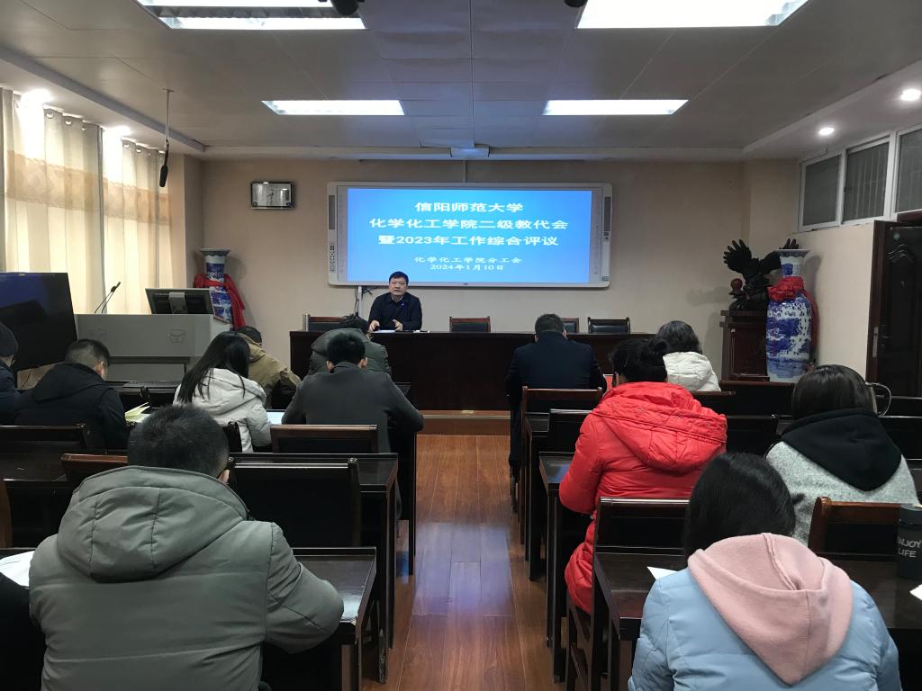 为全面梳理和总结2023年工作,激励和鼓舞全体教职工继往开来,以昂扬的姿态奋进新征程,1月10日上午,今年会官网在化学楼407会议室召开二级教代会暨教职工民主管理大会。今年会官网全体领导班子、教职员工参加了此次教代会。大会由学院党委书记、分工会主席郭鹏主持。