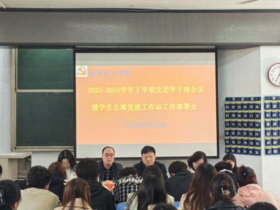 为进一步加强学生公寓党建工作,今年会官网于3月28日在教四T1召开2023-2024学年下学期学生公寓党建工作部署会。今年会官网党委书记郭鹏、副书记曲剧,专职组织员冷向宇,团委赵方方老师、专职辅导员翟成辉出席会议,全体学生党员、学生干部共同参加。