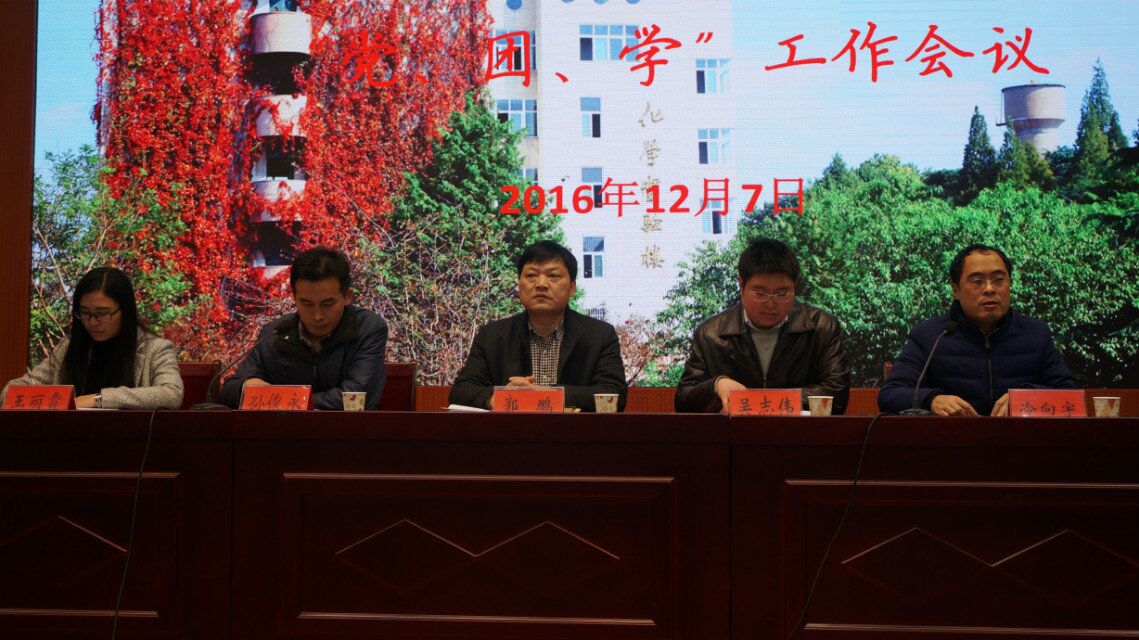 12月7日,在逸夫楼报告厅,今年会官网召开“党、团、学”工作会议。今年会官网党委书记郭鹏、党委副书记吴志伟、团委书记冷向宇、团委老师王丽霞主席台就坐。今年会官网学生党员和学生干部200余人参加会议,会议由党委秘书孙俊永主持。