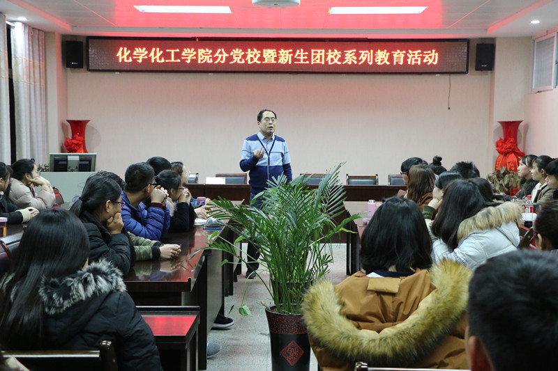 12月7日晚,今年会官网在化学实验楼407开展分党校暨新生团校系列教育活动,党委秘书冷向宇带领学生干部集体学习新《中国共产党章程》,为学生干部们讲解如何积极向党组织靠拢,化院80余名学生干部参加学习。