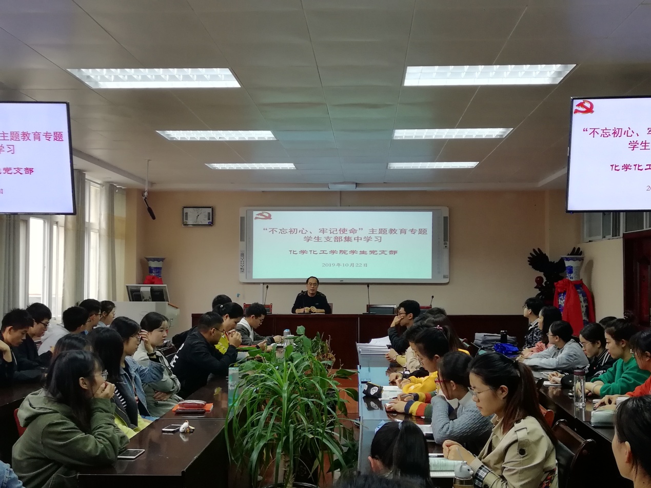 冷向宇介绍了学院教师党支部已经开展的相关活动,传达了学院分党委关于近期开展“不忘初心,牢记使命”主题教育活动推进举措,对学生党支部主题教育学习进行了推进部署和具体安排。根据学生党员学习生活实际,他全面传达学院党委书记在推进会上的安排部署,要求全体学生党员结合自身实际,制定个人学习计划,并从学习、生活、工作和个人修养等方面对照党章党规、对照初心使命认识,深刻检视,查找问题,找差距、补短板、抓落实,要通过持续抓理论学习,加深对习近平新时代中国特色社会主义思想和党的十九大精神的理解把握,跟进学懂弄通习近平总书记系列重要讲话精神内涵,切实达到统一思想认识、提升理论水平、增强责任担当、发挥学生党员模范带头作用。