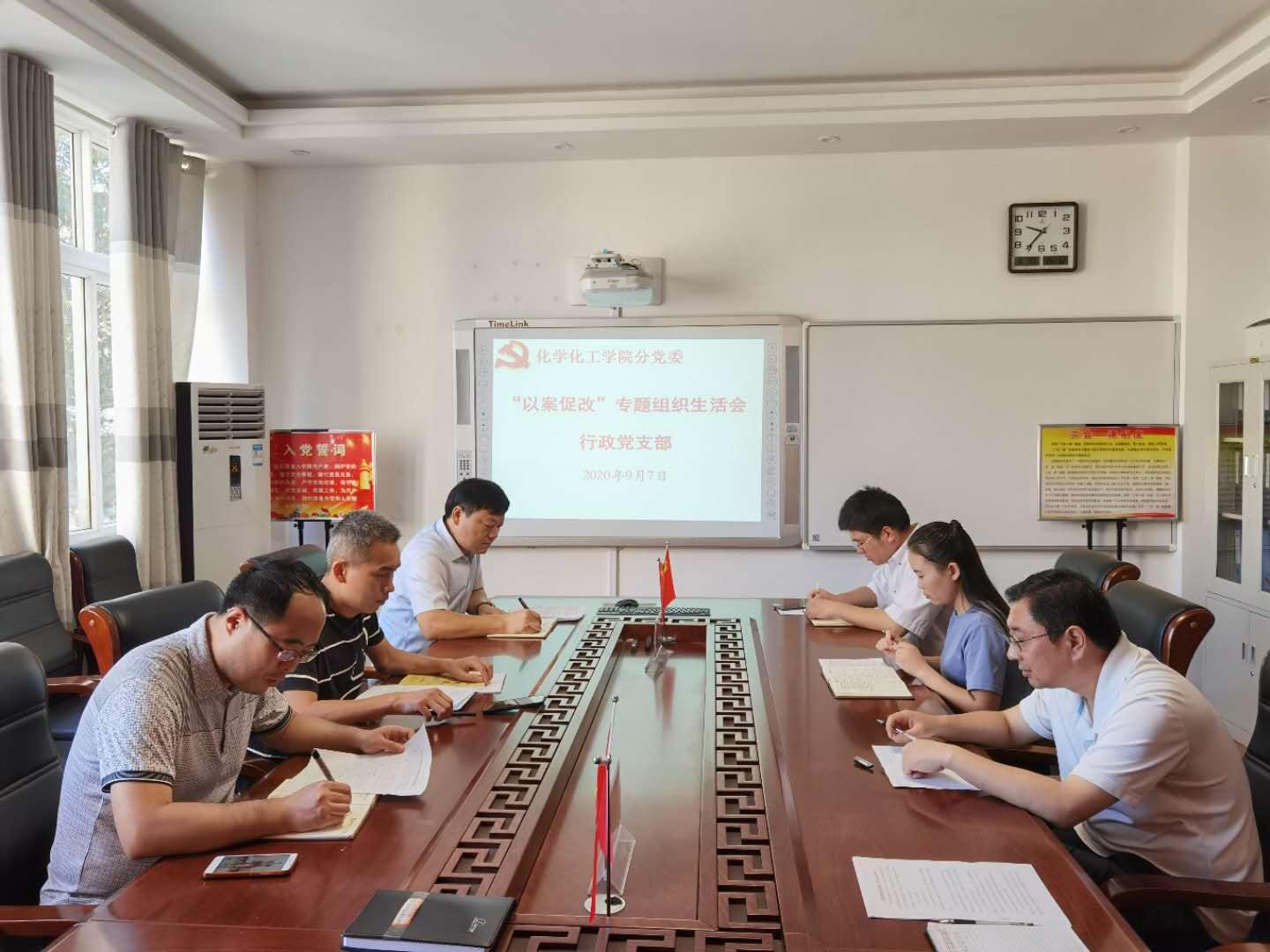 9月7日上午,行政党支部在“党员之家”专门召开以案促改专题组织生活会,学院党委书记郭鹏以普通党员身份参加所在支部专题组织生活会,并认真总结点评指导支部活动。行政党支部全体党员参加了活动,会议由党支部书记孙俊永主持。