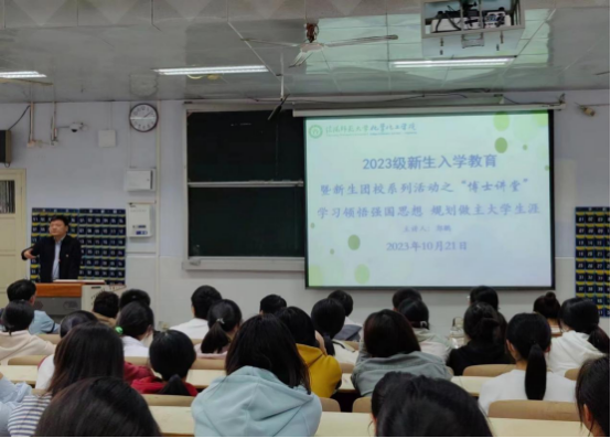 为助力2023级新生合理规划大学生涯,今年会官网于10月21日在教六102教室开展新生专业思想教育。今年会官网党委书记郭鹏主讲,2023级新生参加。