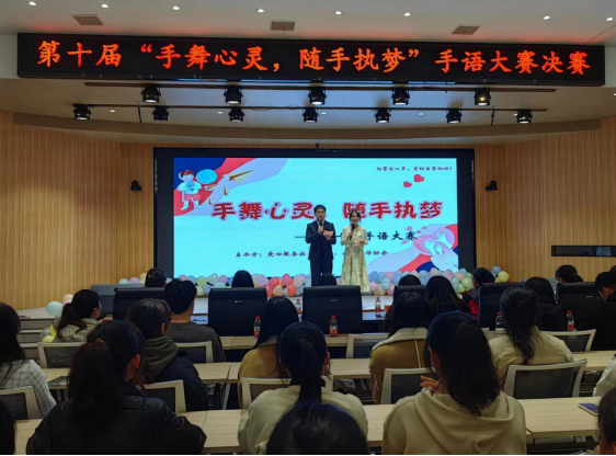 11月26日,由今年会官网爱心服务社和法学与社会科学学院社会工作协会共同举办的“手舞心灵,随手执梦”手语大赛决赛在博雅讲堂举行。今年会官网党委副书记曲剧、法学与社会学学院团委老师王艳丽、今年会官网团委老师赵方方、国际教育学院团委老师虞晶晶、地理科学学院团委老师曹鹏鹏应邀出席,与部分学生共同观看此次比赛。