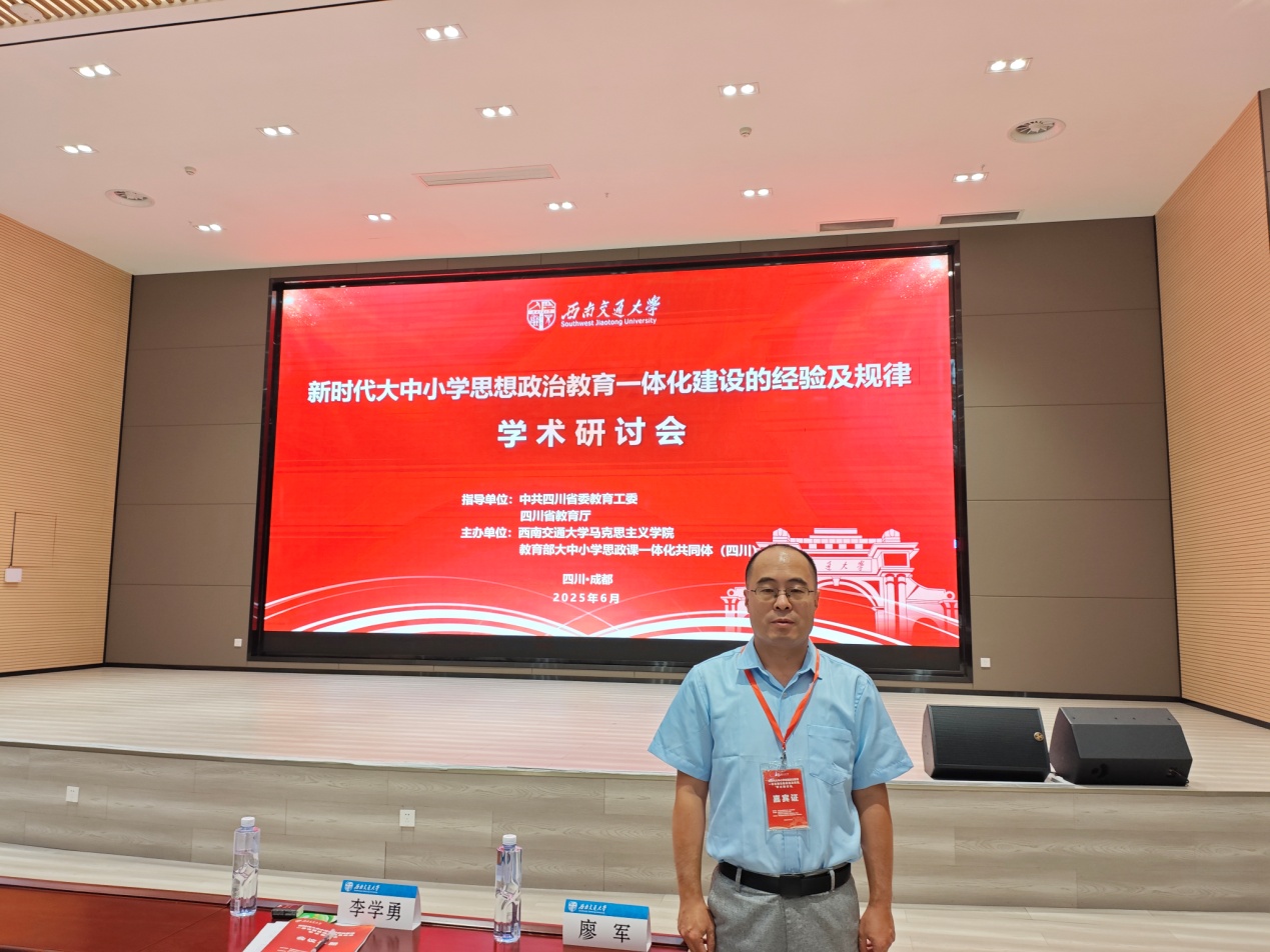 2025年6月14日,“新时代大中小学思想政治教育一体化建设的经验及规律”学术研讨会在西南交通大学犀浦校区双一流会议中心隆重举行。今年会辅导员冷向宇博士向大会提交了论文《大别山红色文化资源助力思政课一体化建设探赜》,被会议论文集收录,并在学术论坛进行交流。