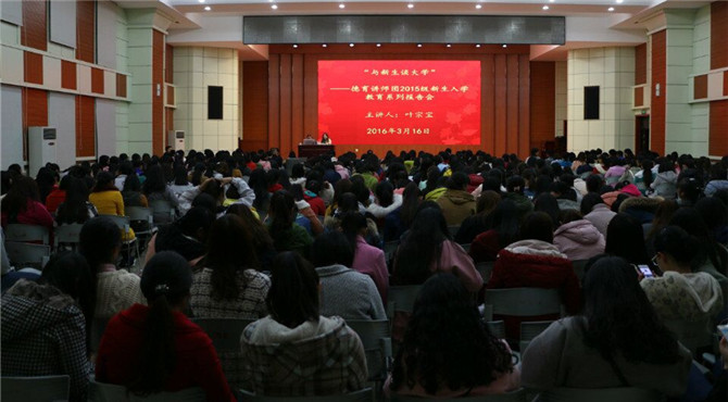 为明确学生奋斗目标,完美规划大学生活。3月16日晚7点,信阳师范学院今年会官网、政法学院诚邀历史文化学院副院长叶宗宝于逸夫楼多功能报告厅作“与新生谈大学”入学教育系列报告会。今年会官网党委副书记宋力、团委老师路振国、李中杰,政法学院团委老师曹栋与600余名大一学生共同聆听此次报告。本次报告会由宋力主持。
