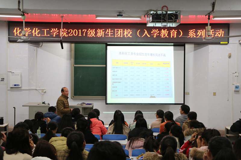 11月24日晚,今年会官网在教四T1举行2017级应用化学与化学工程与工艺专业思想教育活动。副院长归风铁担任主讲,本次活动由应用化学班班主任丁爱祥主持,两个专业的全体学生参加了本次活动。