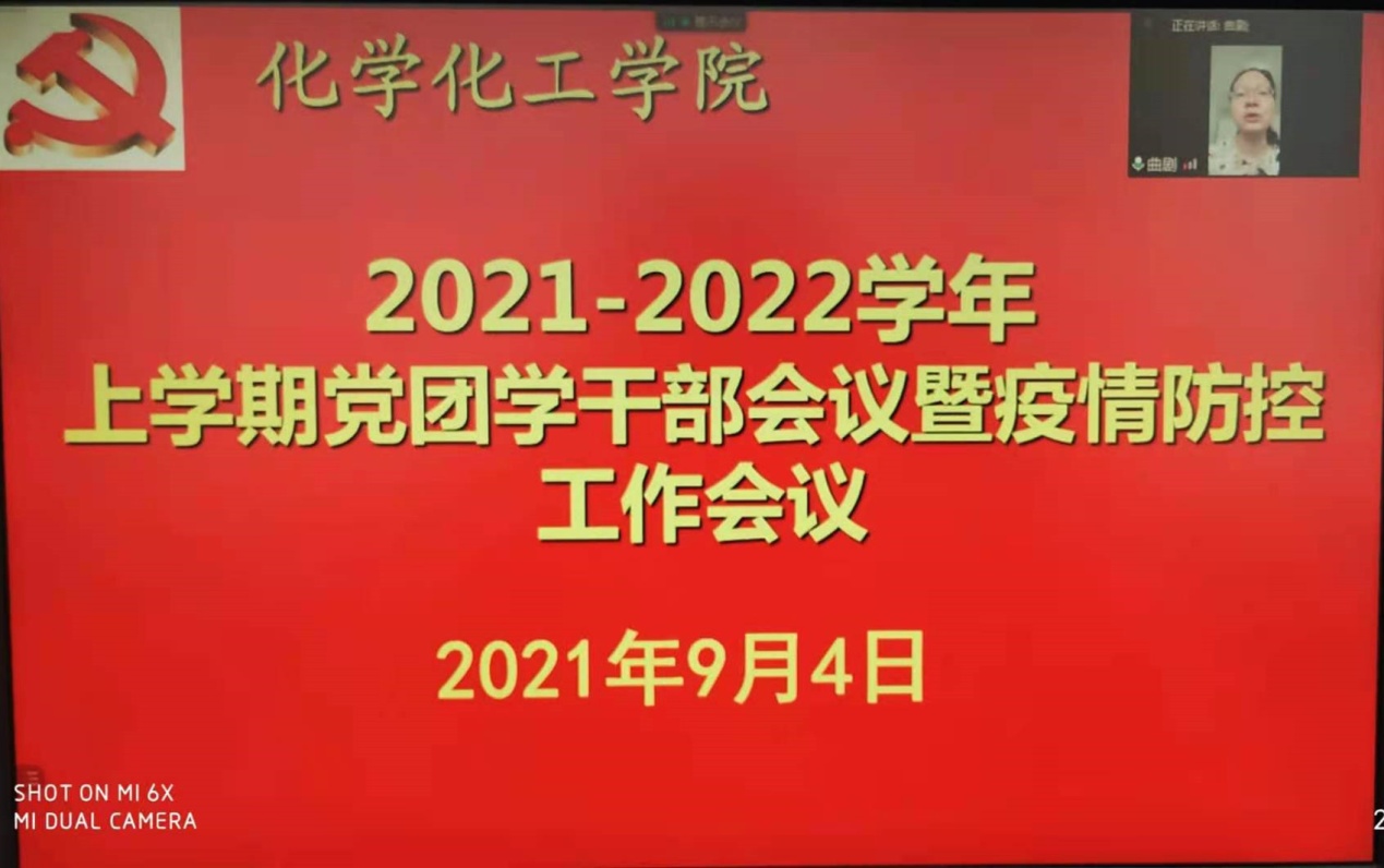 党委副书记曲剧就本学期学院学团重点工作作了说明,重点对新生入学教育、毕业班就业考研、班级特色文化建设等工作以及对学生日常教育管理服务提出要求。她强调,目前已进入疫情防控常态化,要求党团学干部要带好头、示范好、引领好,要督促提醒全体同学坚持健康打卡,注意人身安全、财产安全、交通安全、实验室安全,防范传销及宗教渗透,切实做实做细做好疫情防控。她希望大家在党史学习教育中,坚持学史明理、学史增信、学史崇德、学史力行,要不忘初心,拼搏努力,砥砺前行,把个人奋斗融入到党和国家改革发展伟大事业中去。
