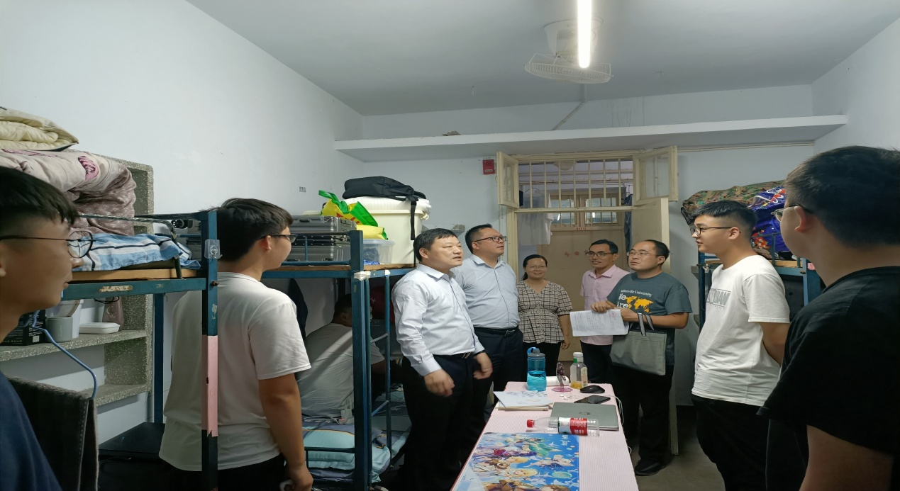 在9号学生公寓,领导老师深入学生宿舍,与新生们亲切交谈,热切地询问了他(她)们的入校感受、家庭情况、新学期的课程安排等,新生们也提出了一些疑惑和问题,学院领导都一一给出了解答,同时希望他们尽快适应学院的生活环境。