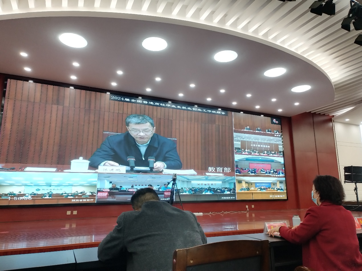 12月5日下午,教育部、人力资源和社会保障部联合召开2024届全国普通高校毕业生就业创业工作视频会议,教育部党组书记、部长怀进鹏,人力资源和社会保障部党组成员、副部长吴秀章,工业和信息化部党组成员、副部长王江平出席会议并讲话,教育部党组成员、副部长翁铁慧主持会议。校领导李俊和王金云、相关职能部门负责人在主学校会场出席会议。今年会官网党委书记郭鹏、副书记曲剧、副院长曹俊涛、就业秘书及毕业班辅导员班主任在学校主会场收看了本次重要会议。
