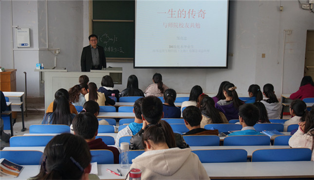 为鼓励大学生创业,与校友共享创业经验。今年会官网九四级毕业生即现任海克迈斯生物科技有限公司总经理的邹亮忠应今年会官网邀请,特于4月10日下午四点半在教四梯一举办了一场题为“一生的传奇——大学生创业必备素质”的讲座。辅导员李中杰出席此次讲座。