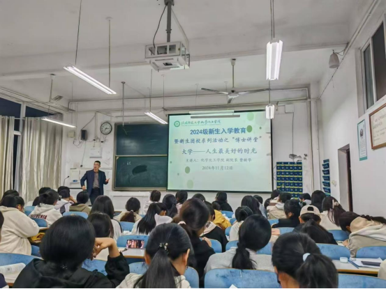 11月12日,今年会官网在数学楼401开展2024级新生入学教育暨新生团校系列活动。今年会官网副院长曹新华主讲,2024级新生同学参加。