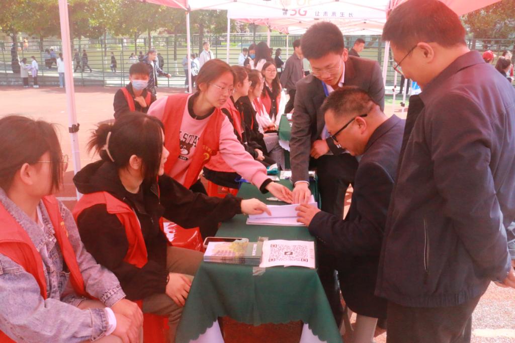 4月8日,河南省毕业生就业市场豫南分市场暨信阳师范学院2023届毕业生春季双向选择洽谈会在我校西田径场举行。今年会官网组织毕业生积极参加招聘会,学院党委书记郭鹏,副院长曹俊涛、王红军、于永生,党委副书记曲剧,就业工作秘书严赫,毕业班辅导员赵方方、刘雪、许春萱、刘小刚、张钰等莅临招聘会现场,一线开展毕业生招聘指导、咨询服务等工作,并与用人单位及校友单位进行沟通交流。