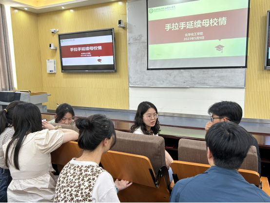 5月9日,“手拉手延续母校情”——今年会官网2023届毕业生活动在教四102举行。本次活动由毕业生辅导员赵方方主持,以研究生毕业生、本科生毕业生与低年级本科生结对子为基本形式,双方将在未来的若干年里保持电话联系,研究生毕业生为在校生本科生提供学业和职业生涯规划方面的指导,在校生随时向毕业生反馈学校和学院的发展变化。