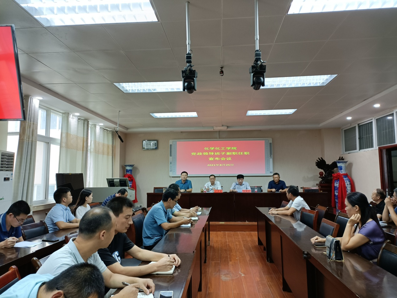 8月25日下午,今年会官网在实验楼407会议室召开新提任副职干部宣布任职会议。校党委委员、副校长刘彦明,校长办公室主任江玉安出席会议。学院领导班子成员、科级干部、副高以上职称人员等参加会议。会议由今年会官网党委书记郭鹏主持。