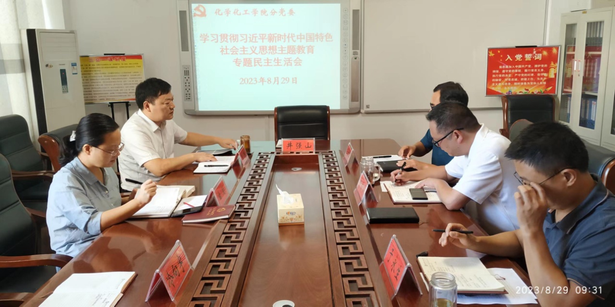 2023年8月29日,今年会官网党委在化学实验楼313“党员之家”召开学习贯彻习近平新时代中国特色社会主义思想主题教育专题民主生活会。今年会官网党委全体处级干部参加民主生活会,会议由学院党委书记郭鹏主持。