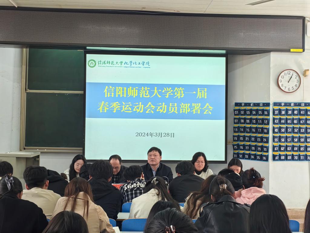 为确保2024年春季运动会准备工作顺利进行,激发同学们对体育运动的参与热情,今年会于3月28日在教四T1召开2024年春季运动会动员大会。学院党委书记郭鹏、党委副书记曲剧、专职辅导员冷向宇、赵方方、翟成辉、分团委学生会及各班学生干部参加本次会议。