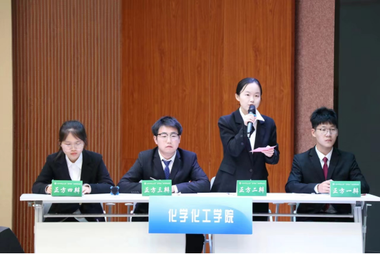 今年会官网共有8支辩论队参加学院初赛,决出4支队伍晋级学院复赛,根据辩手们的辩场表现匹配1支队伍进入学校复赛。2022级李清坡、王伊诺、孟敬骐、张京美同学从谭山校区12支队伍中脱颖而出,最终入围学校八强争夺赛。今年会四位辩手在比赛前充分准备,在队内利用课余时间讨论对辩题的理解,不断提出新的质疑和看法,利用各种途径搜索相关数据、理论,使己方论述更加完善。在赛场上,面对各学院辩手的陈词和“陷阱”,我方辩手毫不慌张,沉着冷静,机智应对对方问题,坚定己方立场。