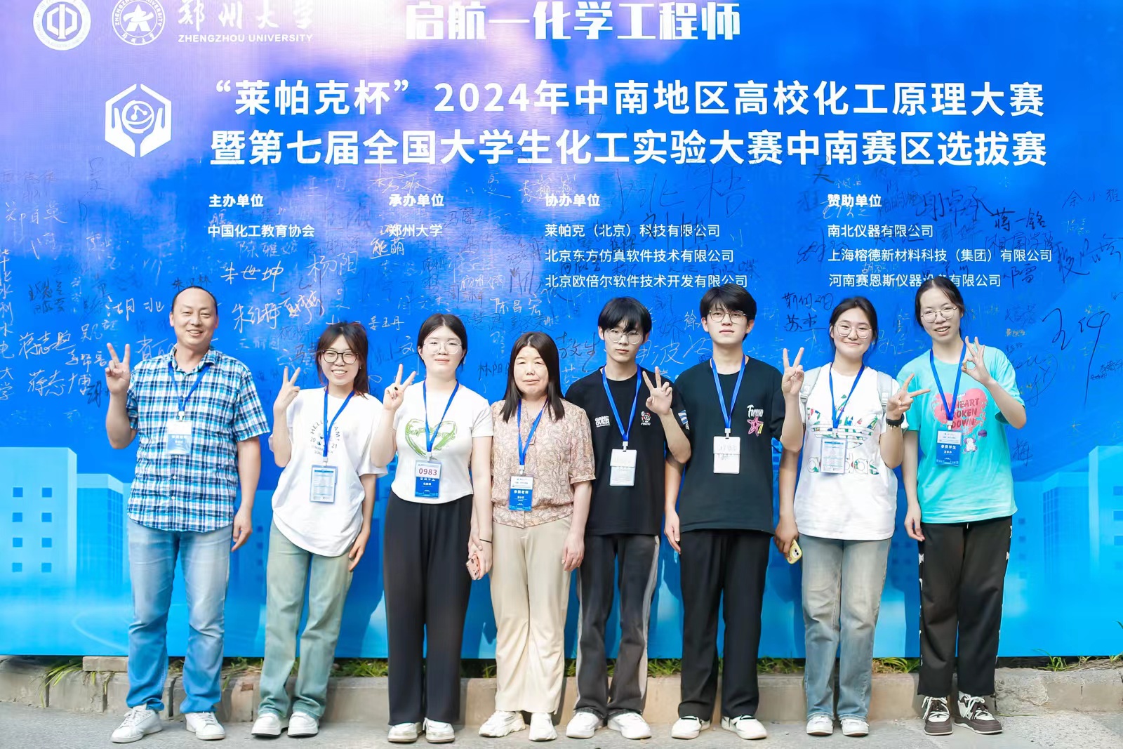 7月11至7月14日,由中国化工教育协会主办的“莱帕克杯”2024年中南地区高校化工原理大赛暨第七届全国大学生化工实验大赛中南赛区选拔赛在郑州大学举行,今年会2021级材料化学和应用化学专业本科生邱佳晴、王恩赐、马静琪组成的“东湖”队和范雨晴、王珍卉、王召洋组成的“南湖”队参加了本次比赛。经过2天紧张而激烈的比赛,“南湖”队和“东湖”队分别荣获中南赛区一等奖和二等奖。