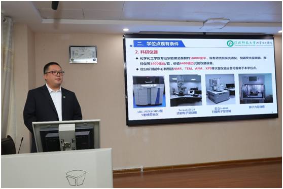 井强山代表学校致辞,对各位与会专家的到来表示热烈欢迎,他向与会专家介绍了我校的基本情况以及化学一级学科硕士学位授权点的发展历程和近年来取得的成绩,他希望与会专家为化学硕士学位授权点的建设和发展多提宝贵意见、传授先进经验,同时对各位专家的辛勤工作表示衷心感谢。