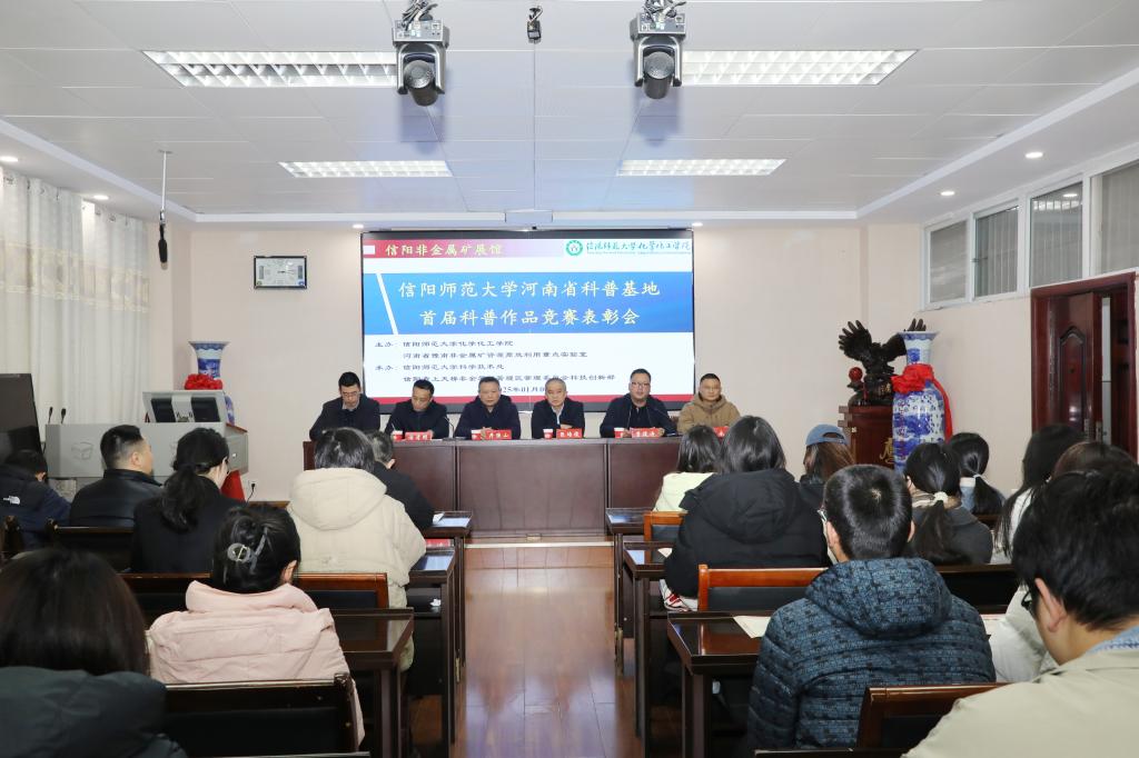 本次竞赛以河南省科普基地信阳非金属矿展馆为平台,旨在激发全校师生及社会对科学普及的热情。自启动以来,共收到来自11个院系、22个专业的近百件作品,包括科普文章、科普视频和PPT讲解等多种形式。这些作品内容丰富多彩,创意独特,寓教于乐,展现了我校高水平的科普创作能力和创作者们的才华。经过激烈竞争和公正评选,最终产生了4个一等奖、12个二等奖和20个优秀奖。井强山副校长为获奖代表颁发了荣誉证书。