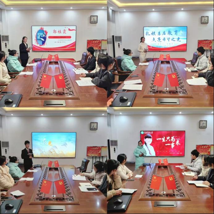 比赛期间,4名参赛选手们围绕着“扎根基层教育,点亮希望之光”的主题展开演讲。王雨晴选手以郭桂霞老师教育故事为切入点,讲述了郭老师感人至深的教育篇章,希望像她那样为基层教育呐喊助威,用关爱与支持为基层的孩子们铺就一条通往广阔世界的大路。陈鑫雨选手着眼于教育的传承与担当,她表示以李芳老师为榜样,学习她坚守基层、奉献一线的定力,争做人民需要的、有理想信念的好老师。李清坡选手以小学的班主任——武老师为故事主线讲述老师带给他的启迪,由此想成为像武老师一样的无私奉献的乡村教师。张晓楚选手以支月英老师的教育事迹向大家表达了她希望发扬奉献担当的教育精神点亮大山孩子的希望之光,照亮学生的成长之路。
