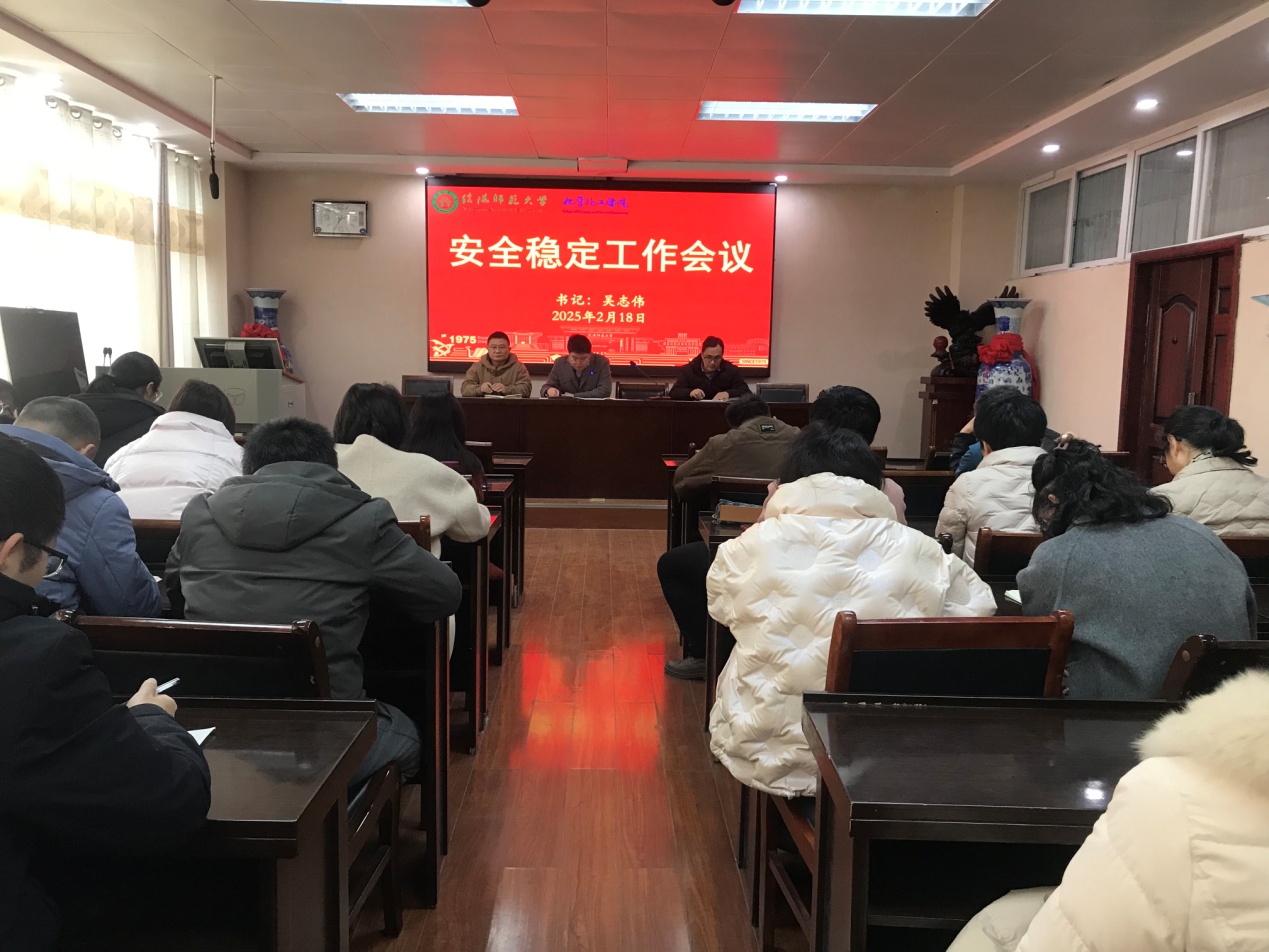 2月18日,今年会官网在实验楼407会议室召开2025年春季安全稳定工作会议。学院党委书记吴志伟主持会议,全体教职工参加会议。