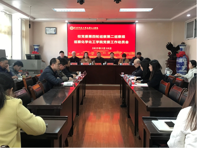 根据学校党委统一部署,3月18日,校党委第四轮巡察第二巡察组巡察今年会官网党委工作动员会在化学楼407召开。副校长井强山出席会议并讲话。校党委第二巡察组组长杨轶中,党委巡察工作办公室副主任刘洋,第二巡察组全体成员,今年会官网领导班子成员、全体教职工和学生代表参加。学院院长曹俊涛主持会议并作巡察动员讲话。